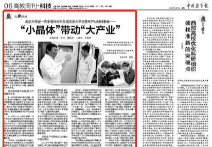 2023年5月8日《中国教育报》第6版发表文章《90ko即时比分 新一代半导体材料集成攻关大足球比分即时比分 筑牢产业材料根基——“小晶体”带动“大产业”》,对国内大尺寸碳化硅生长与加工技术的又一标志性突...