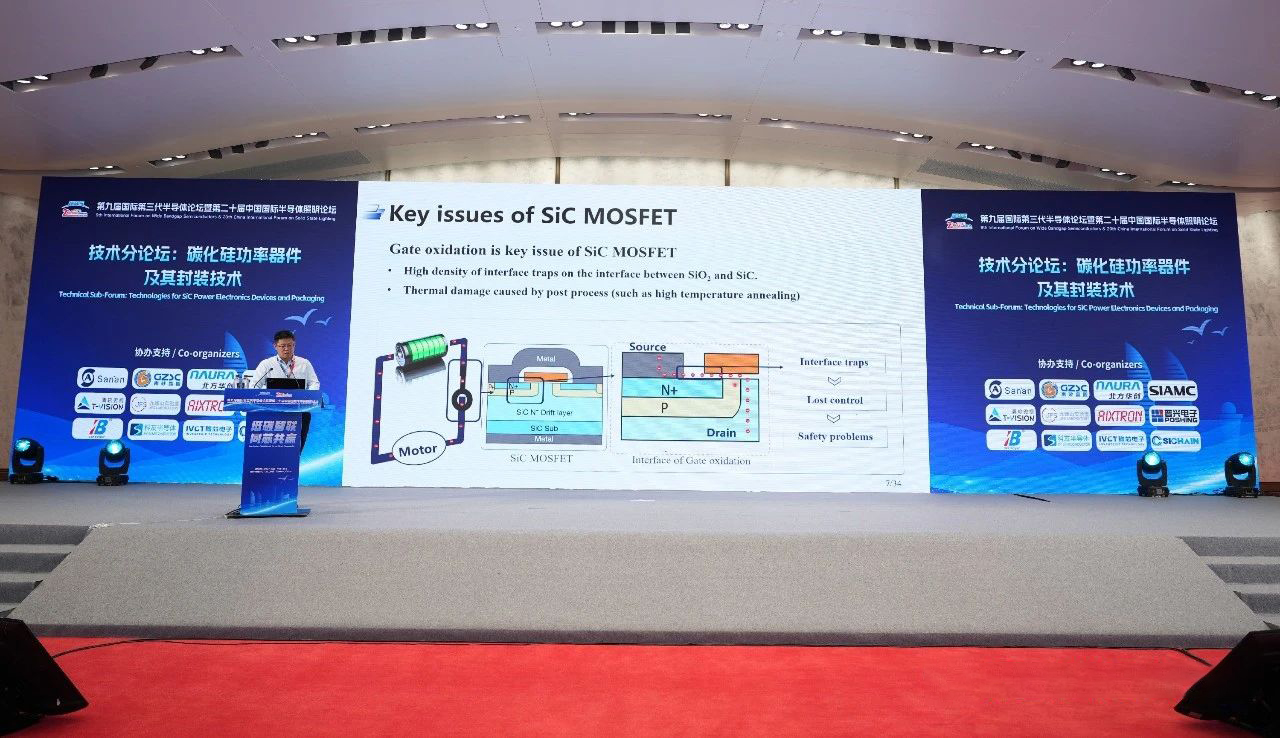徐明升教授作“SiC的高温氧化研究”主题报告,分享了最新研究成果,涉及栅极氧化、沟槽MOS管等。他讲到SiC材料具有优异的高温稳定性、耐腐蚀性、热导性能和机械强度等优势,因此受到广泛关注和应用;高质量SiC氧化技术是SiC器件的关键核心工艺,通过不断优化SiC氧化工艺,可以进一步提高SiC功率器件的质量和性能,推动碳化硅功率器件在电动汽车等领域的广泛应用。