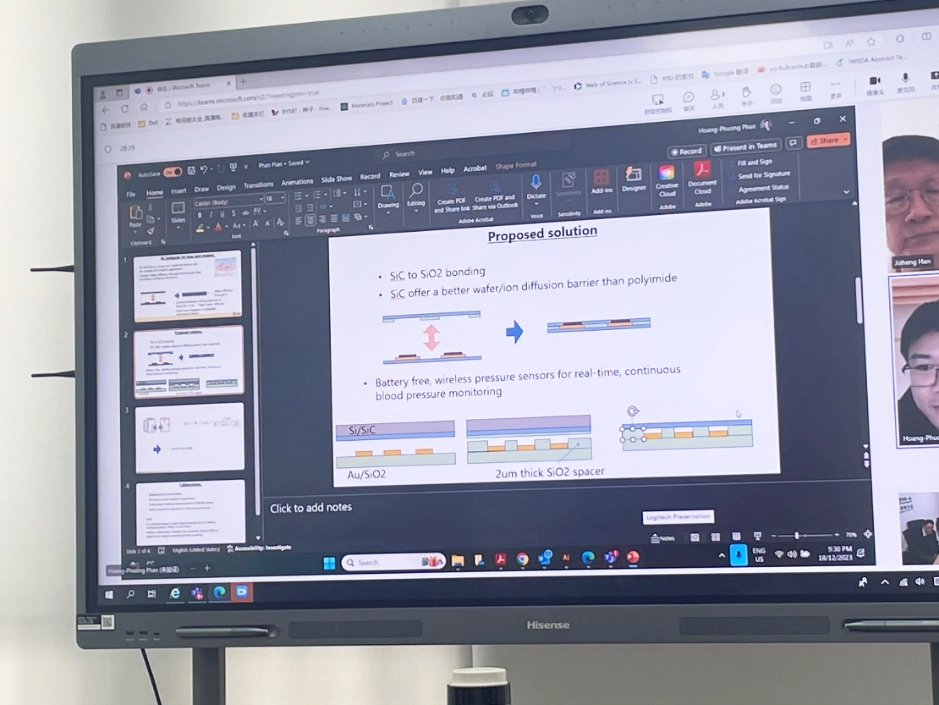 双方团队线上连线,讨论了机械传感器制技术方案,制备工艺与要求等内容。报告探讨后,双方达成了合作共识,讨论机械传感器共同制备、研究生联合培养、组织国际学术会议等国际合作详细事项。