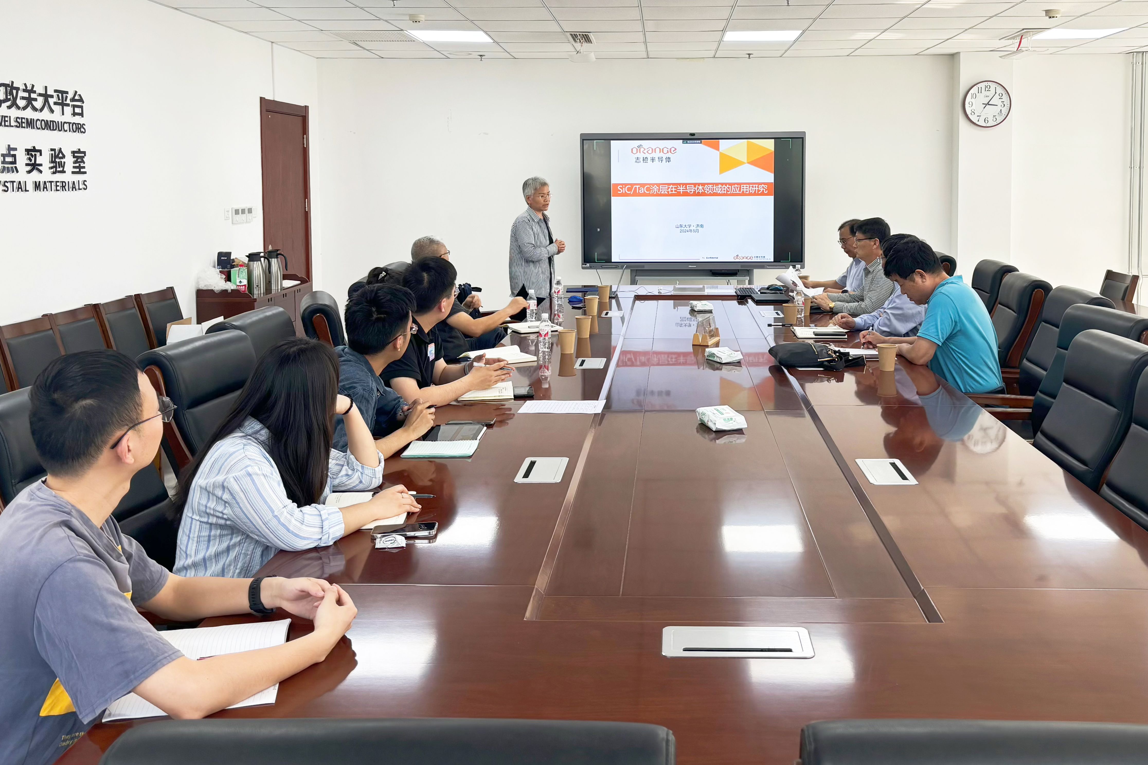 报告期间,靳博士和现场师生围绕新型涂层制备技术、反应过程机理、涂层寿命、产品成本等方面进行了讨论。此后,徐现刚教授向靳彩霞博士表示感谢并颁发证书。