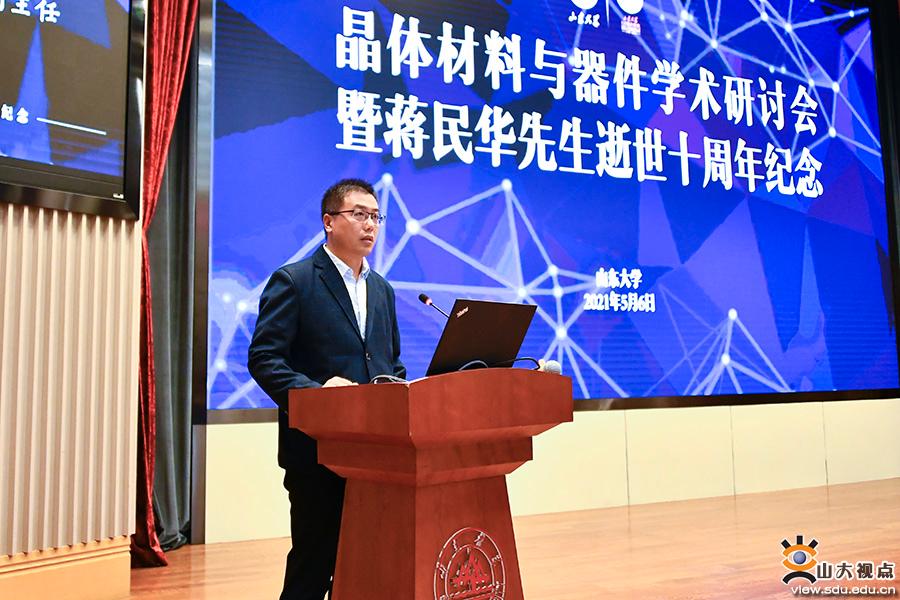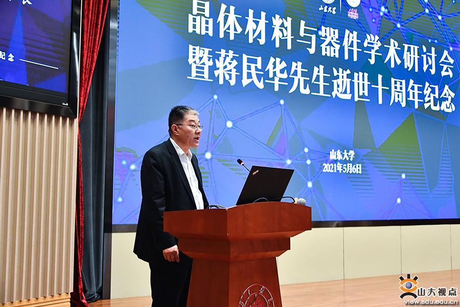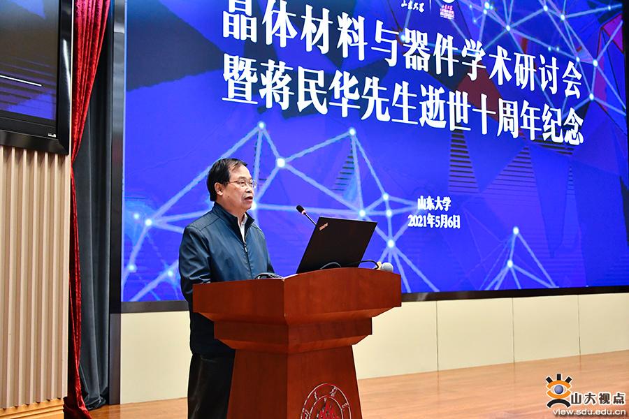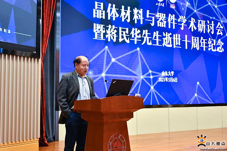 晶体材料国家重点实验室许东教授回顾了实验室的建设和发展历程,追忆了与蒋先生共处的33年的珍贵时光。他表示,今天缅怀蒋先生的光辉业绩,就是要向老一辈的科学家学习,发扬他们团结拼搏、持之以恒的精神,同时注重科研应用和产业化的紧密结合。