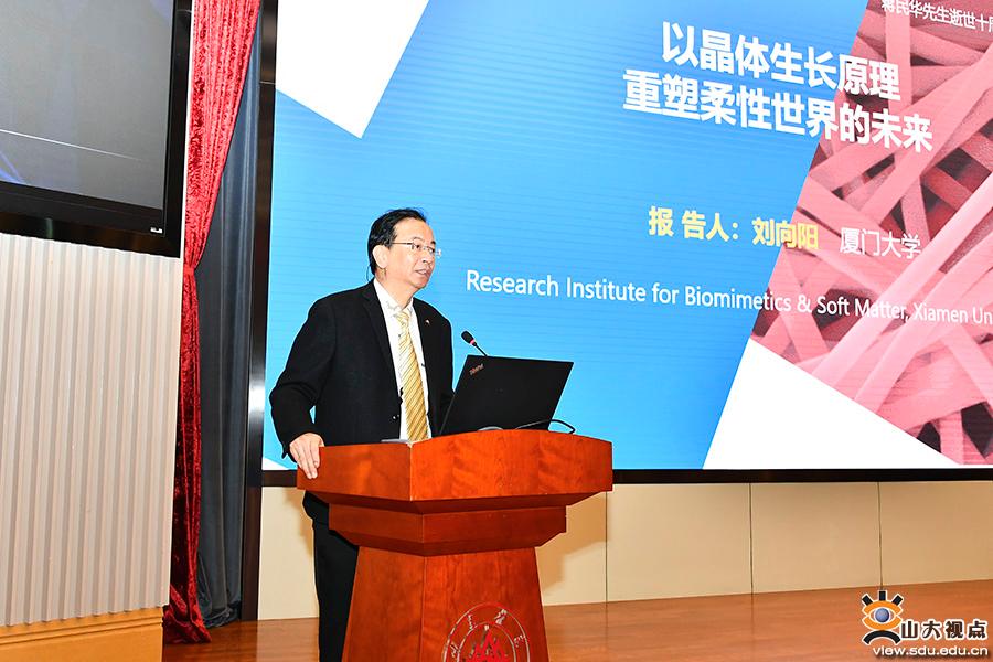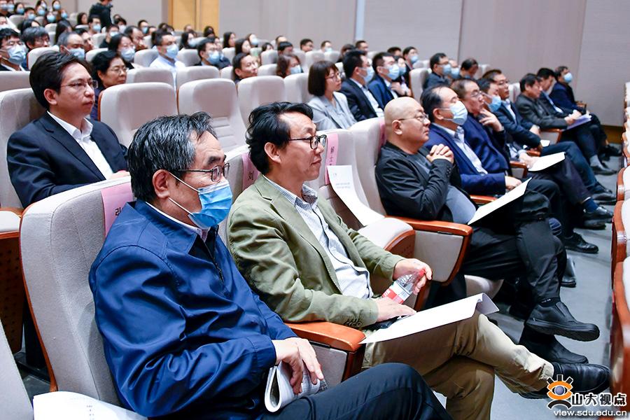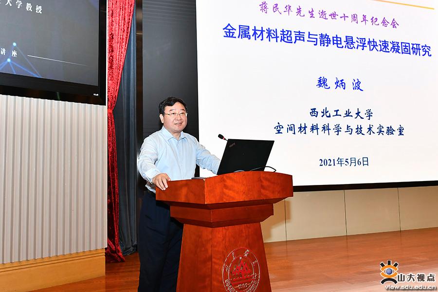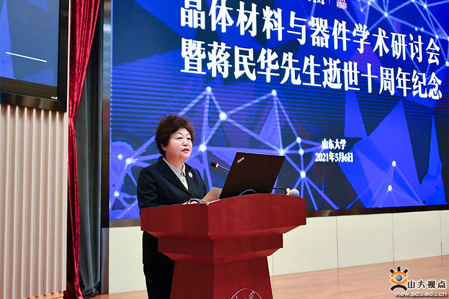 樊丽明指出,蒋民华先生是我国晶体材料领域的卓越开拓者之一,在国内外享有崇高声望。他扎根教学科研一线,用心执教、潜心育人、倾心科研,把毕生的精力和心血都奉献给了国家、奉献给了人民、奉献给了教育。他的一生,是爱国的一生、奋斗的一生、奉献的一生。蒋民华先生是老一辈科学家中的优秀代表,他怀着质朴的爱国主义情怀,凭借深厚的学术造诣,创造了非凡的工作业绩,为国家和人民作出了重要贡献,生动诠释了科学家精神的深刻内涵,以实际行动模范践行了“为天下储人才、为国家图富强”的办学宗旨,是值得全体山大人永远学习的楷模和榜样。我们要学习他胸怀祖国、服务人民的爱国精神,勇攀高峰、敢为人先的创新精神,甘为人梯、奖掖后学的育人精神。樊丽明强调,百廿山大正站在继往开来、赓续辉煌的历史新起点,我们要继承好、弘扬好蒋民华先生科技报国、忘我拼搏、勇攀高峰的精神,追求卓越,只争朝夕,争做立德树人的践行者、重大科研成果的创造者、科技自立自强的奉献者,为实现中华民族伟大复兴作出新的更大贡献。