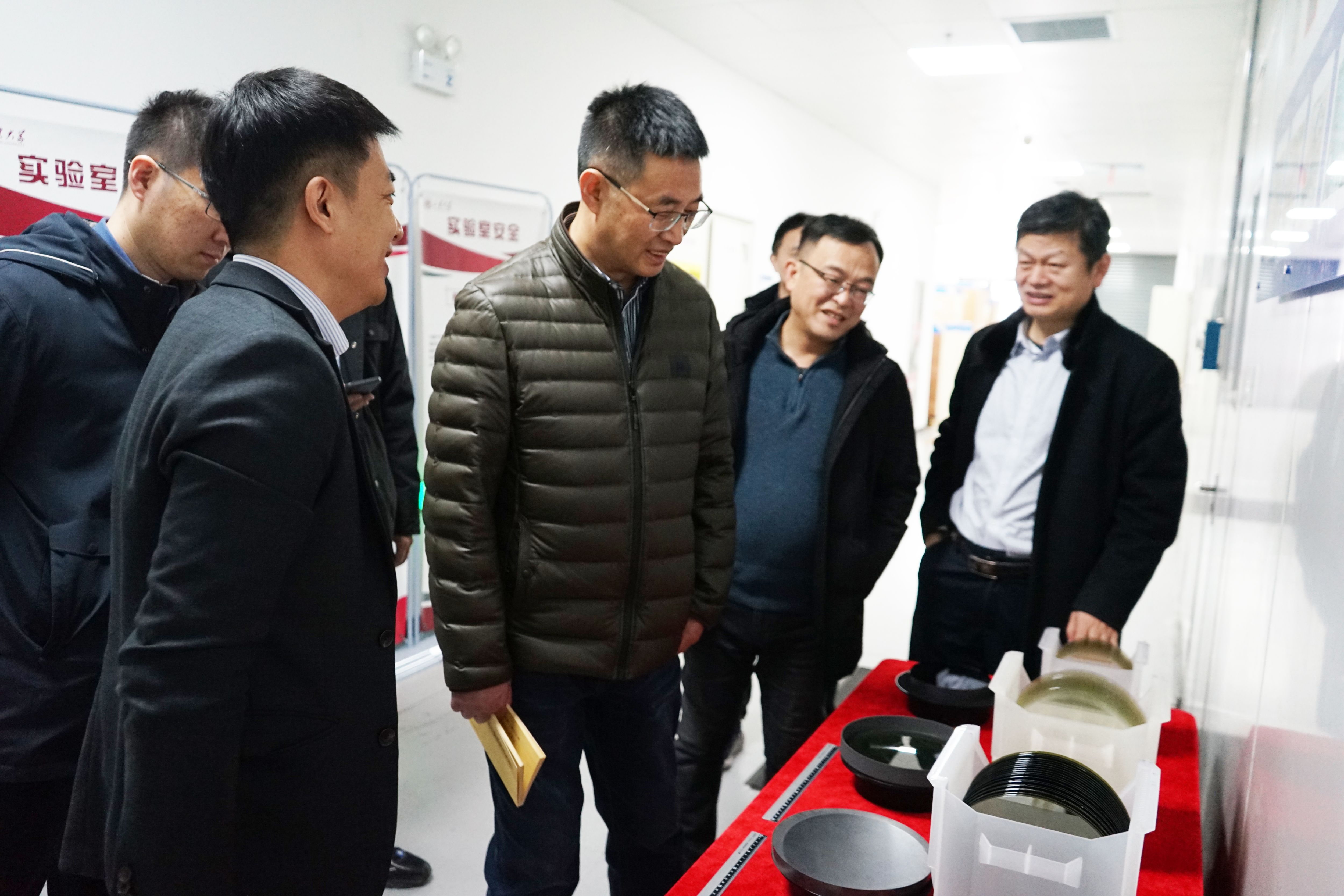 在晶体材料国家重点实验室展厅,方江平一行了解了国重的发展历程和其在各个领域的研究成果,听取了桑元华教授关于研究所大尺寸优质磷酸二氢钾(KDP)晶体、半导体碳化硅单晶材料、氧化锆纤维、新型激光非线性光学晶体等的研究进展汇报,详细了解了科研成果在技术转化和产业化方面的情况,高度赞扬了晶体国重“十年磨一晶”的坚持。
