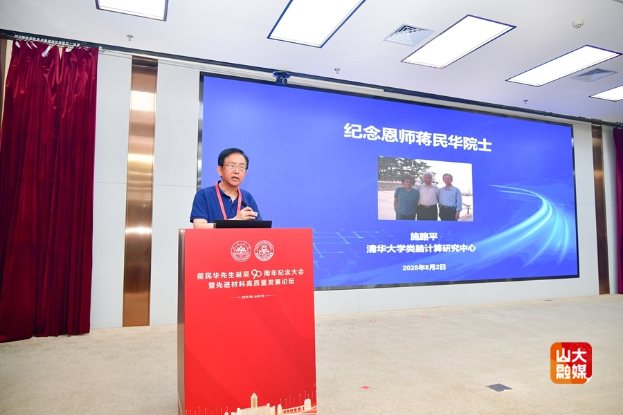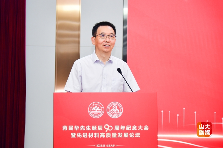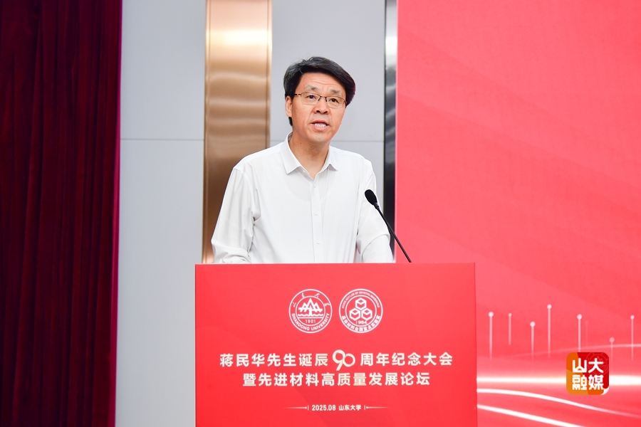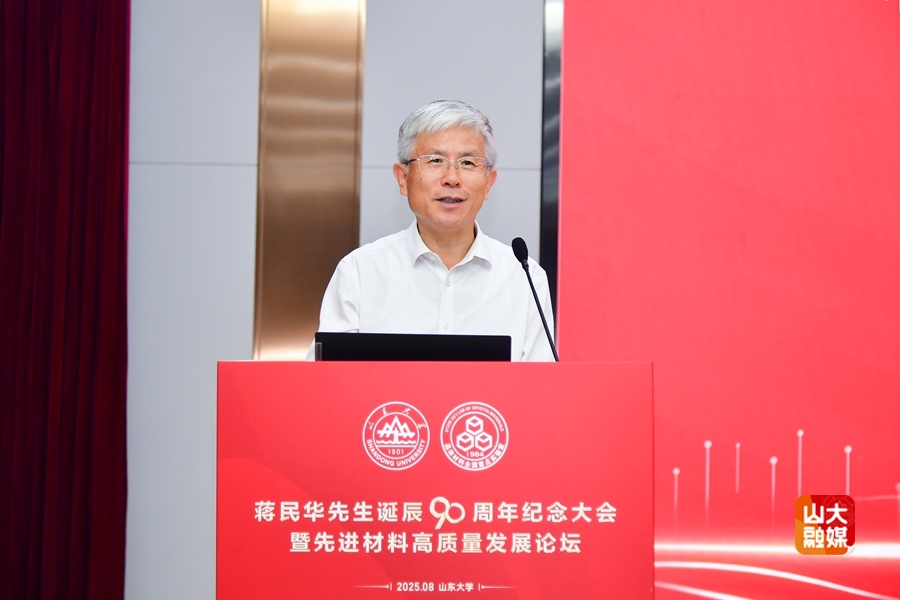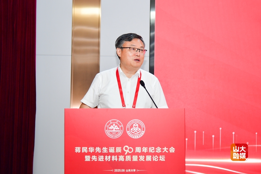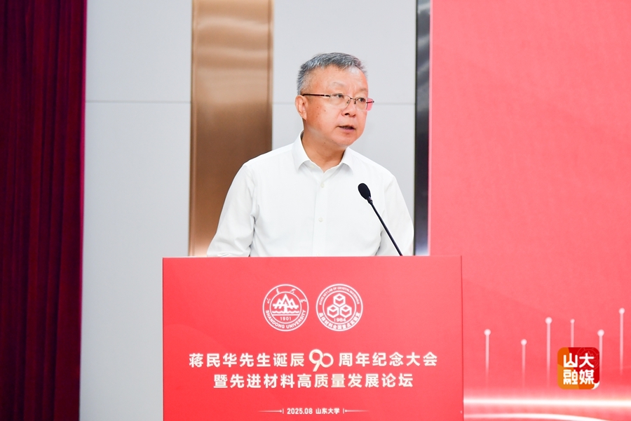 、厦门大学三校工作经历,回顾了蒋民华先生卓越的学术贡献。他说,蒋先生身上集中体现了科学家精神、教育家精神,以及“学无止境、气有浩然”的山大校训精神,号召广大教育科技工作者以老一辈科学家为榜样,为服务国家高水平科技自立自强、建设科技强国贡献力量。