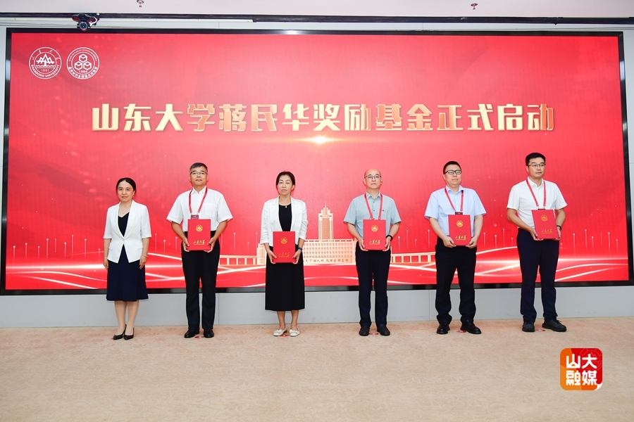 副校长王美琴、蒋民华女儿蒋宛莉、成都东骏激光股份有限公司、青岛镭视光电科技有限公司、广州南砂晶圆半导体技术有限公司、山东华光光电子股份有限公司等企业和校友代表共同启动基金。王美琴为基金捐赠代表颁发捐赠证书。