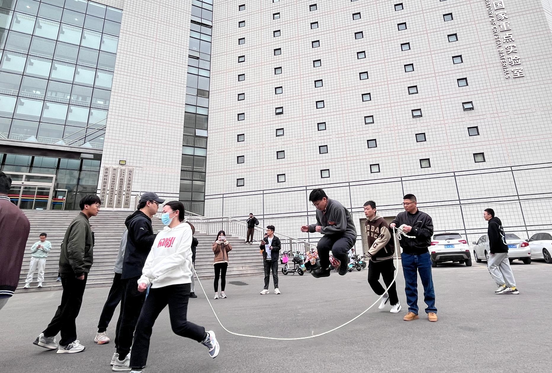 3月16日下午,在比赛开始之前,参赛队伍已经全部到达晶体材料研究院楼前进行练习,队员们兴高采烈、跃跃欲试。