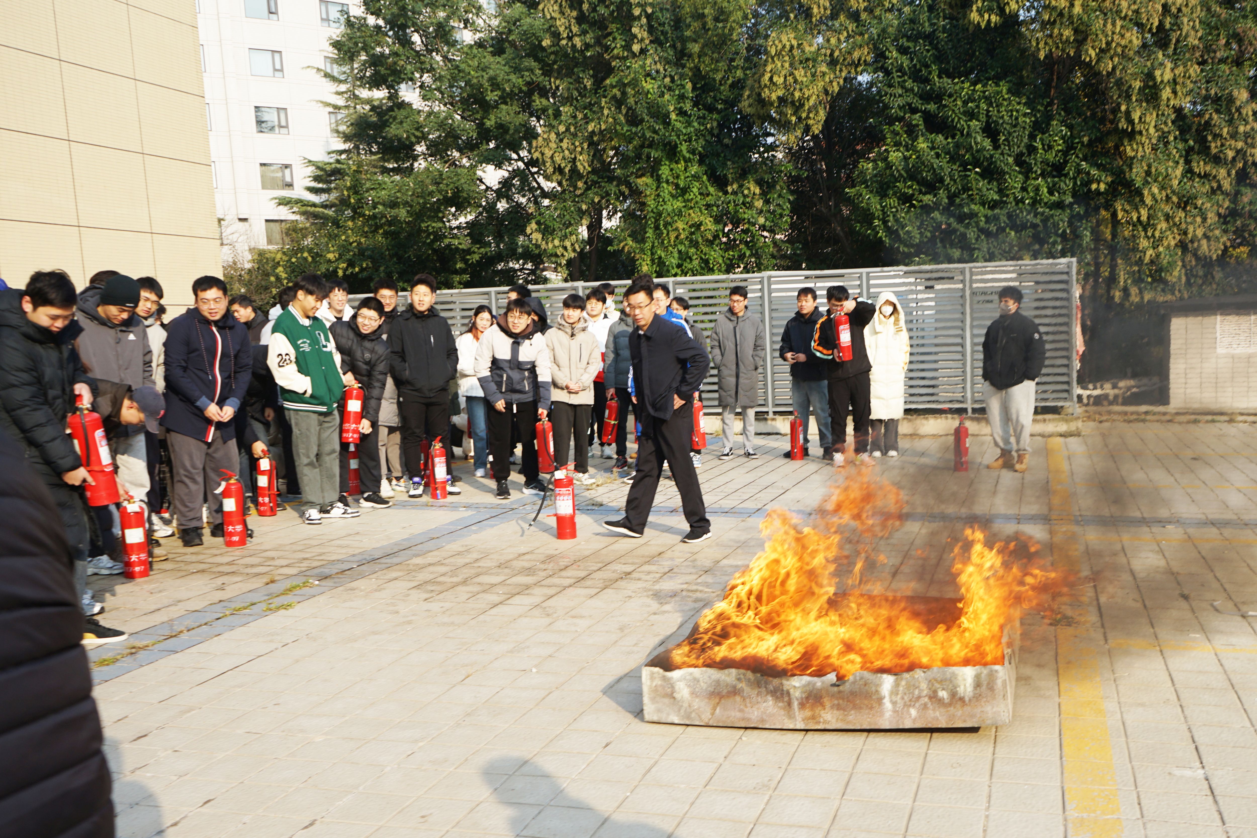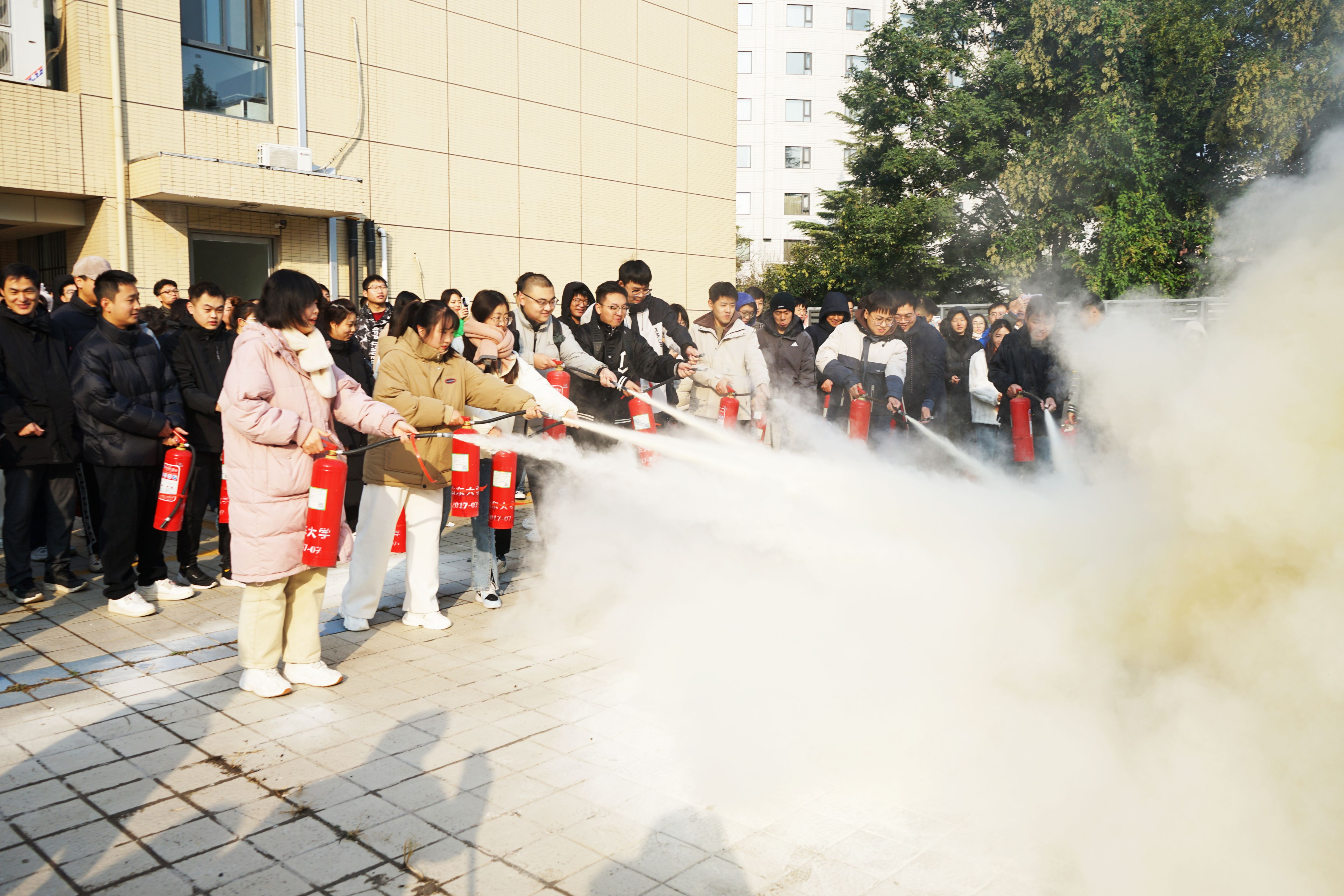 为保证活动安全顺利开展,半导体研究院、晶体院与保卫处提前制定详细消防演练方案,对消防应急演练现场进行认真布置与工具准备。上午九时,师生在生命北楼东侧广场集合,杜春兴对大家进行消防安全培训,讲解消防常识和应急处置方案,并作消防器材使用详细讲解。培训结束,公安处工作人员在广场适当位置点燃火苗,组织师生进行灭火演练,每位到场师生积极参与演练,保证每人都能掌握消防疏散与灭火实战的基本操作。