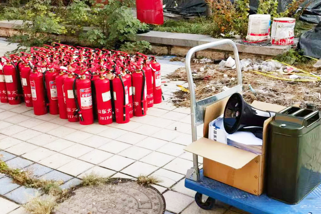 图:党委保卫部与半导体研究院安全管理人员准备消防演练用品