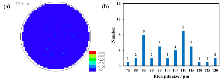 图2:TSD密度为0.55 cm-2的分布图和TSD特征腐蚀坑统计分布
