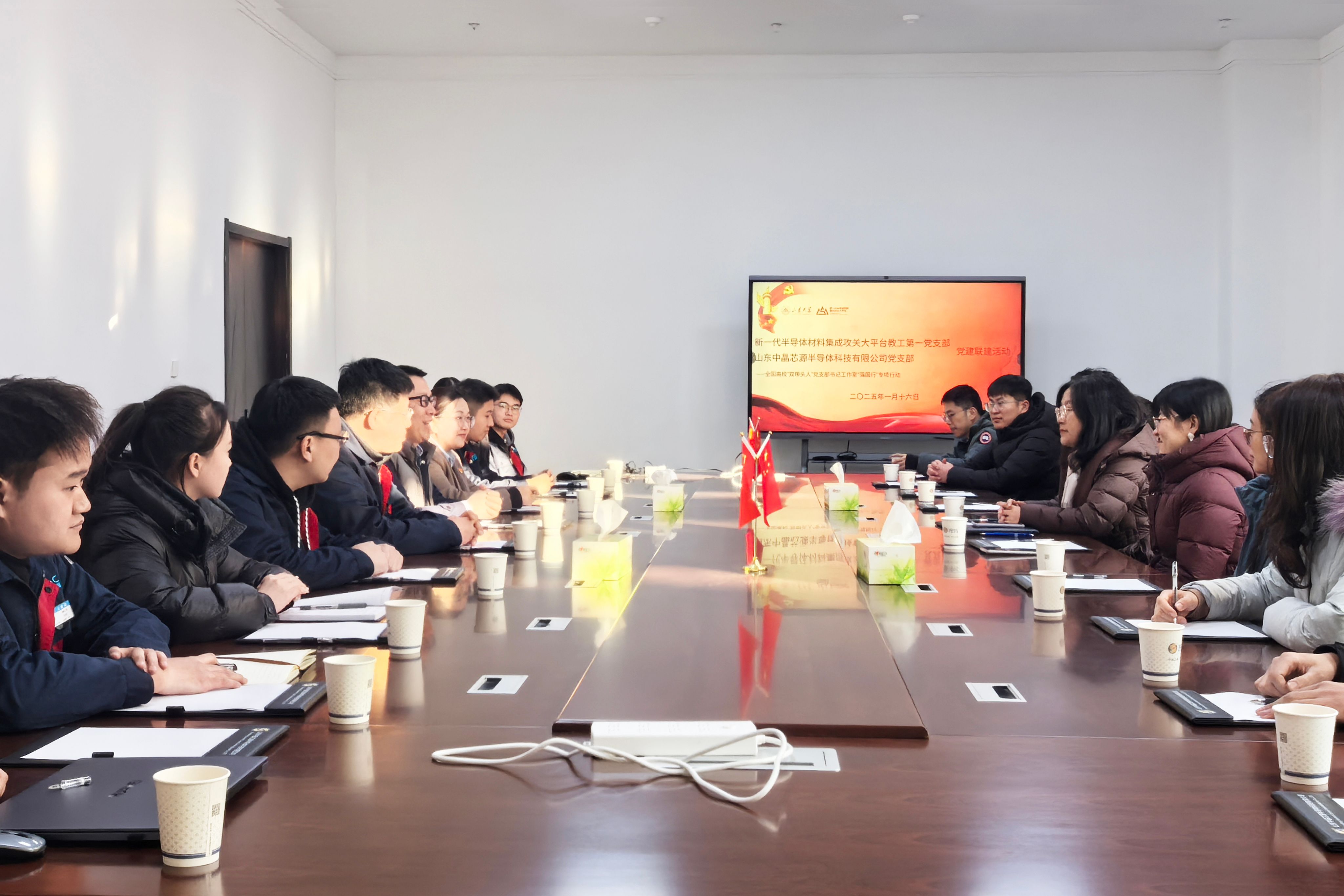1月16日,为深入贯彻落实“强国行”专项行动安排部署,高校“双带头人”党支部书记工作室、90ko即时比分 新一代半导体材料集成攻关大足球比分即时比分 教工第一党支部(以下简称足球比分即时比分 教工第一党支部)与山东中晶芯源半导体科技有限公司(以下简称中晶芯源)党支部开展党建联建活动。晶体材料全国重点实验室党委书记、集成攻关大足球比分即时比分 党总支书记刘全芬,集成攻关大足球比分即时比分 教工第一党支部书记陈秀芳带队前往中晶芯源,中晶芯源副总经理田亮光、王雨雷,党支部书记姚月平参加相关活动。