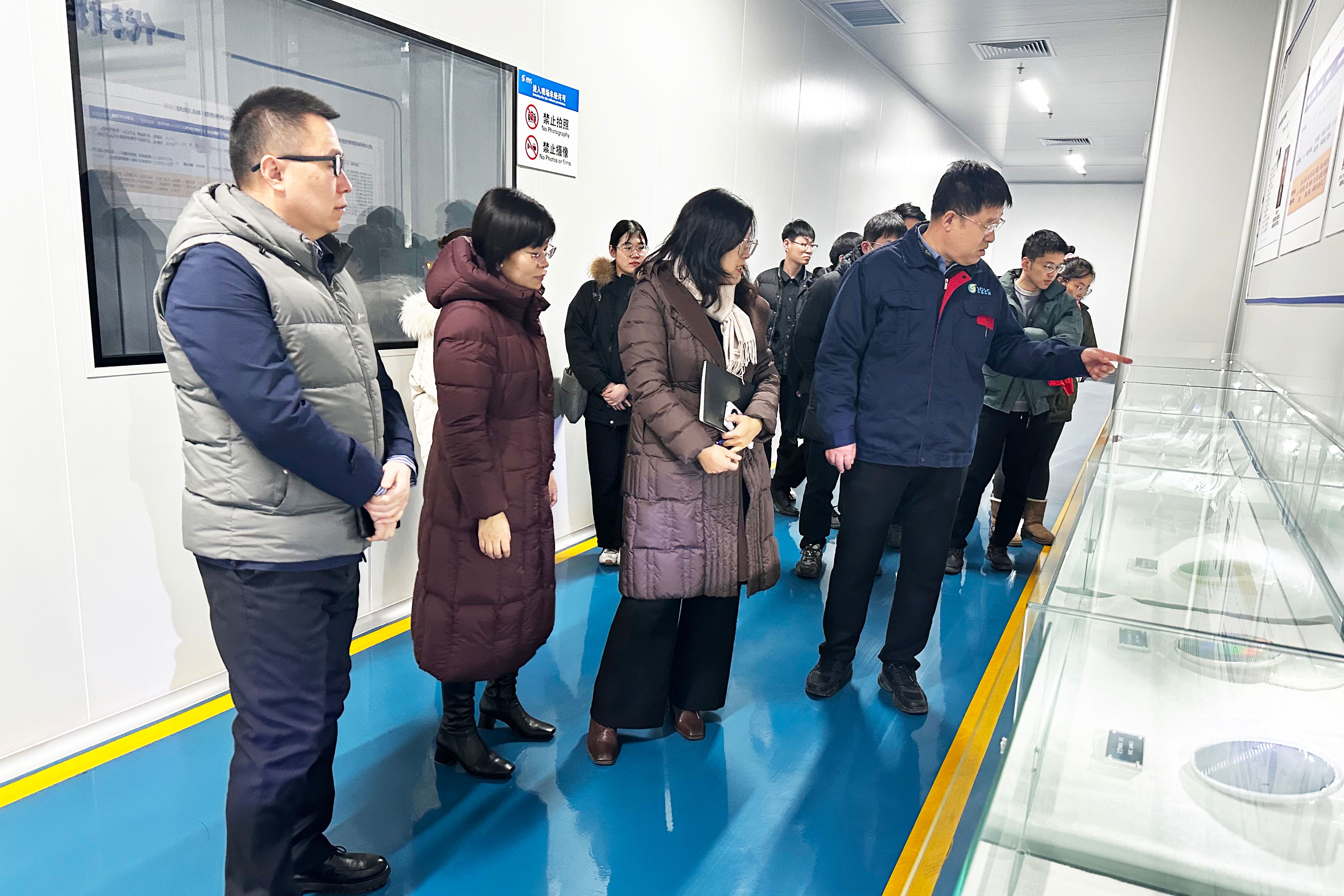 田亮光带领足球比分即时比分 教工第一党支部一行参观了中晶芯源成果展厅与生产车间,展示了从碳化硅粉料到八英寸、十英寸碳化硅单晶的生长流程,讲述了公司的建立发展历程、成果转化情况以及当前局势下第三代半导体国内外发展形势。