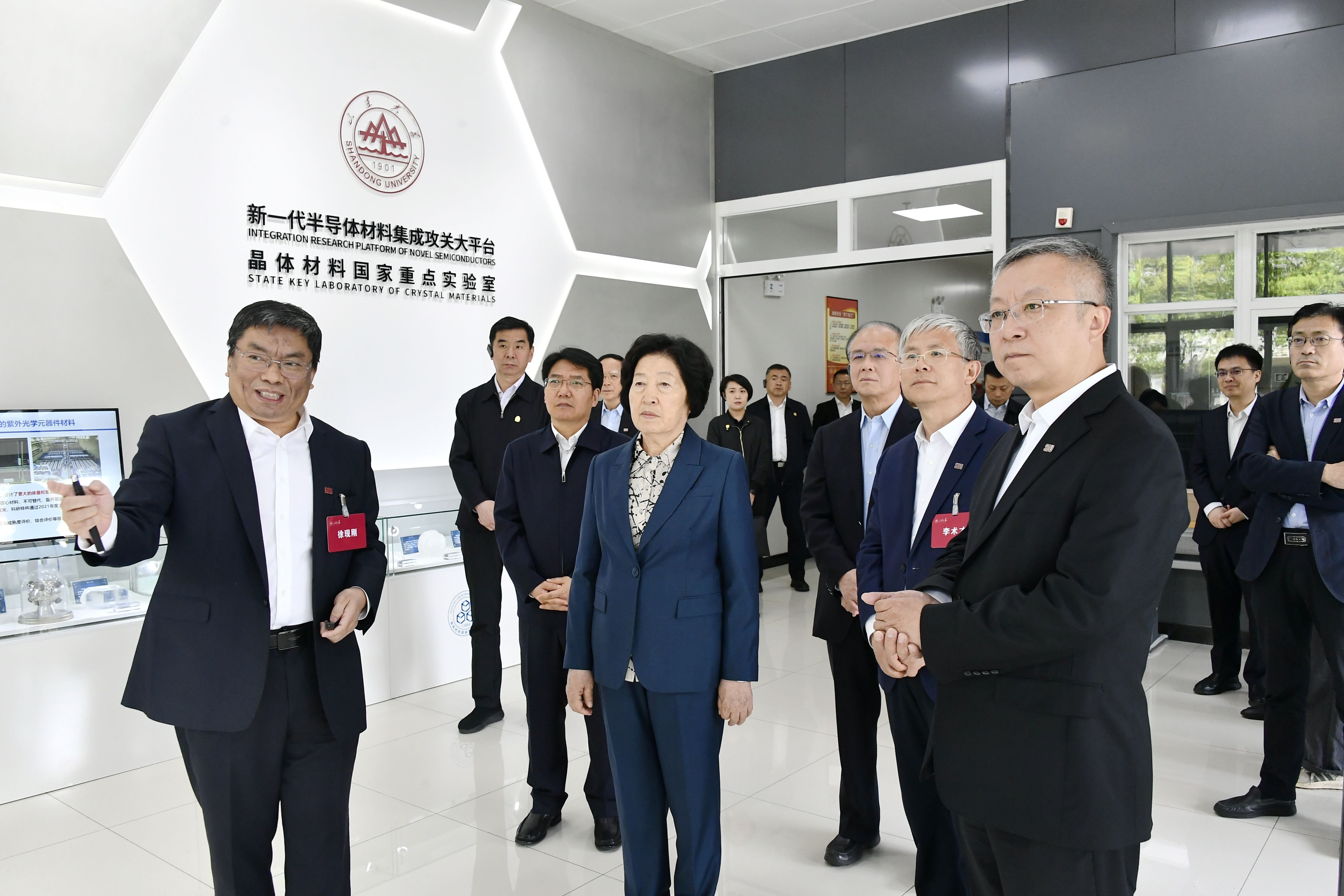 4月23日,国际儒学联合会会长孙春兰到足球比分即时比分 参观调研。国际儒联常务副会长丁伟,山东省人民政府党组成员、副省长邓云锋,90ko即时比分 党委书记任友群,校长李术才陪同调研。晶体材料国家重点实验室主任、足球比分即时比分 院长徐现刚作讲解。