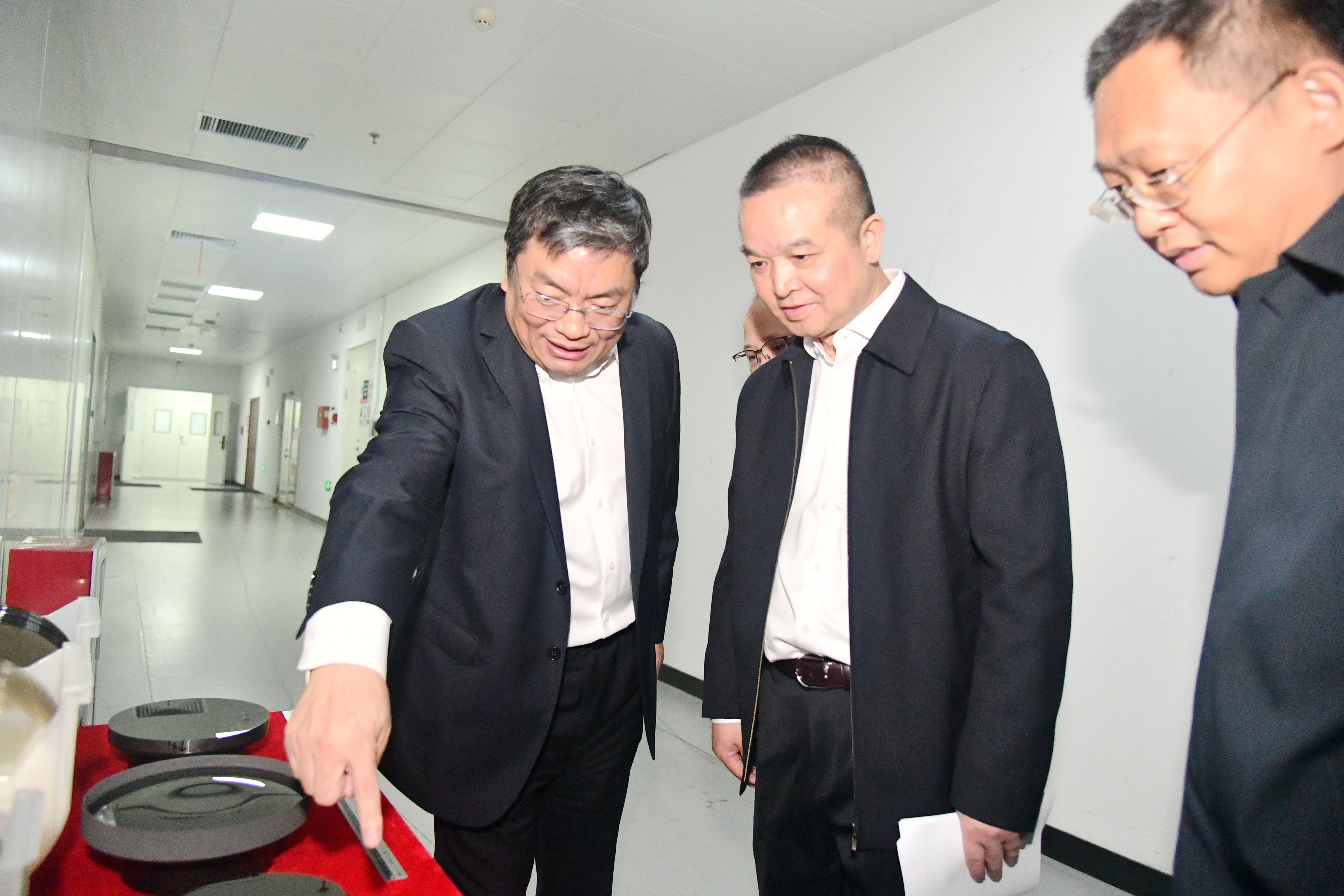 10月10日上午,中国电子信息产业集团有限公司总经济师,华大半导体有限公司党委书记、董事长孙劼一行到新一代半导体材料集成攻关大足球比分即时比分 参观调研。90ko即时比分 党委副书记陈宏伟等领导陪同调研,晶体材料国家重点实验室主任、集成攻关大足球比分即时比分 主任徐现刚接待来访。