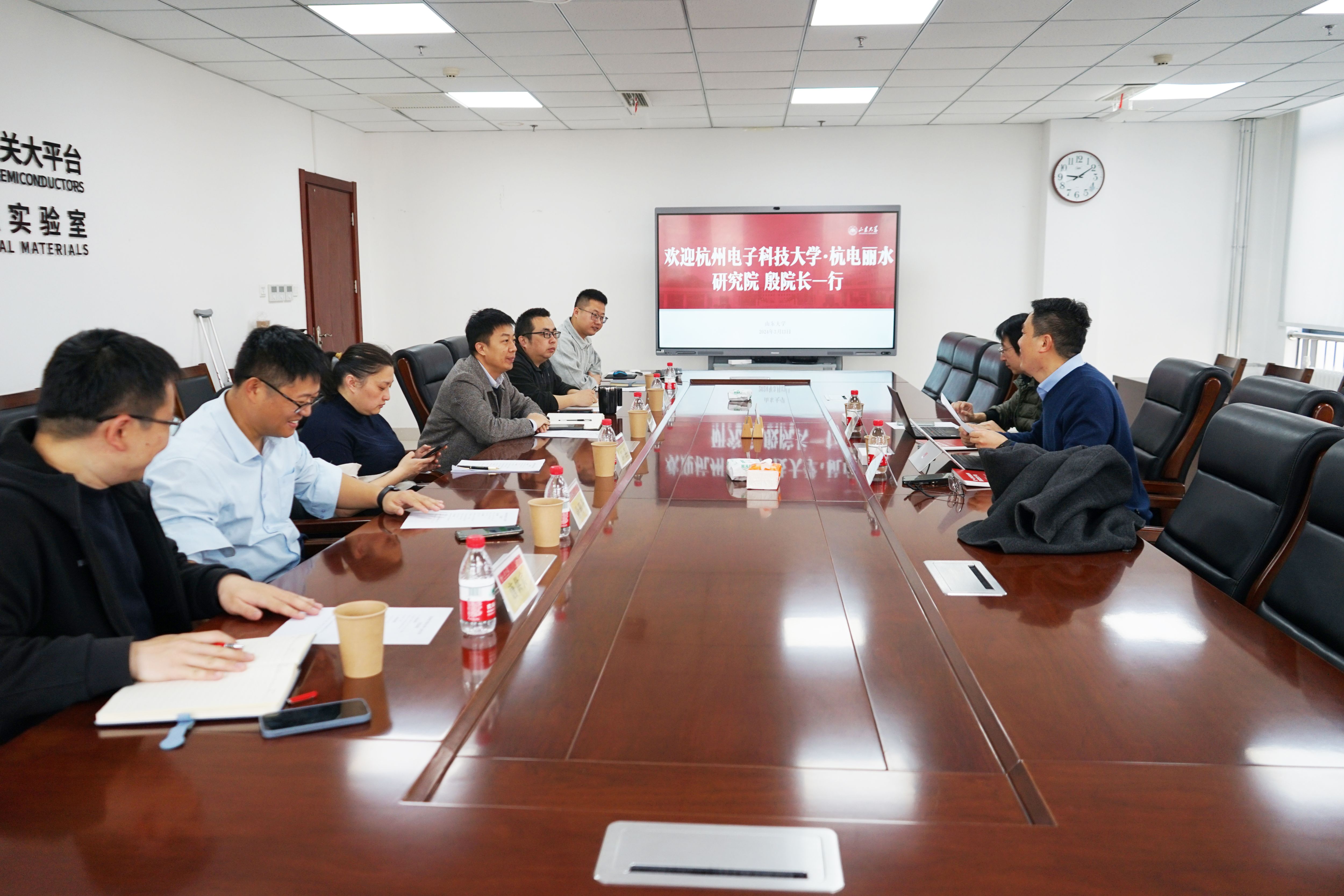 3月13日上午,杭州电子科技大学丽水研究院副院长殷海兵教授、创新足球比分即时比分 部主任胡冀到足球比分即时比分 交流座谈。半导体研究院彭燕教授、张雷教授、徐明升教授、唐供宾教授、肖龙飞副研究员陪同调研与座谈,研究院副院长任颖主持会议。